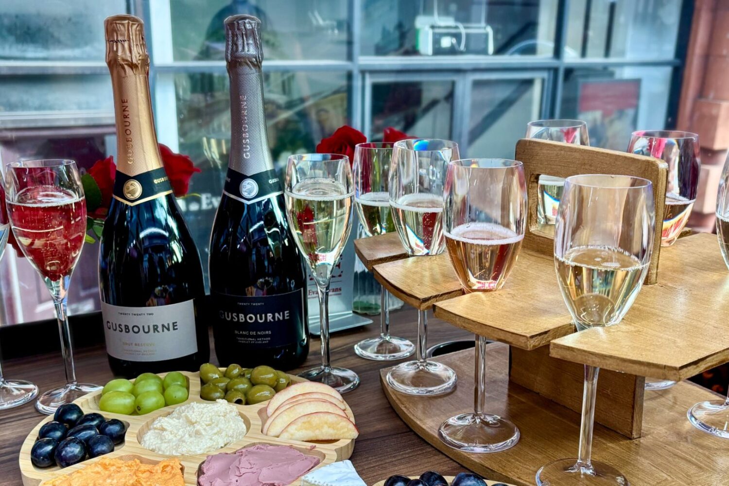 Along the way, enjoy a sumptuous wine tasting experience with Award Winning Gusbourne English sparkling wines perfectly paired with a delicious, curated selection of cheeses chosen to complement each wine, combining culture, luxurious flavour, and unforgettable views.
